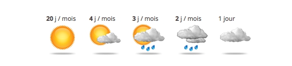 Les précipitation moyennes sont de 32 mm pour 24 jours sans pluie.